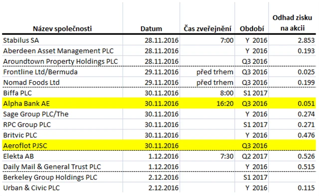 Poznámka: Odhady analytiků jsou aktuální k 24. 11. 2016.