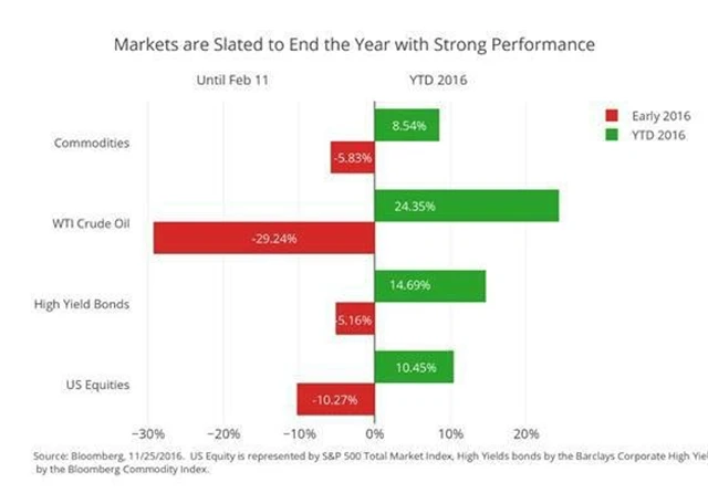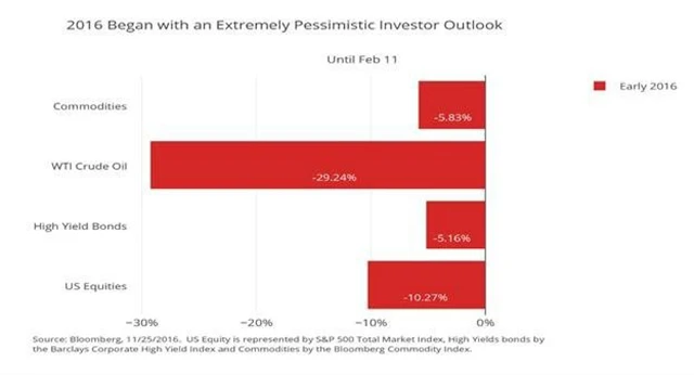Pokud někdo na začátku letošního února tvrdil, že americké akcie nebo ropa budou na konci roku v dvouciferných procentuálních ziscích, byl možná považován za blázna, v lepším případě za odvážného kontrariána, který trochu dělá machra, ale sám tomu snad ani nemůže věřit. Ropa a americké akcie ale nejsou jediná překvapení, která rok 2016 investorům a ekonomům připravil.