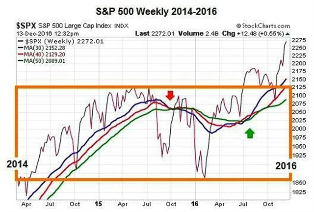 Mezi lety 1982 a 2016 došlo k podobným obratům trendu pouze 10krát. A i když jsou podmínky v roce 2016 jiné než v ostatních případech, podle Ciovacca lze očekávat podobný vývoj. Jde totiž o to, jak se trhy pohybují na základě takzvané čisté interpretace fundamentů platných v daném čase a zda vytvářejí pozitivní (zelené šipky), nebo negativní (červené šipky) trendy. I když se tedy fundamenty v čase mění (ocenění, politika Fedu, zisky firem a podobně), chování trhů v konečném důsledku ovlivňuje právě čistá interpretace fundamentů.