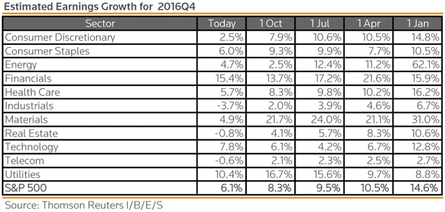 Jaký vývoj zisků firem z S&P 500 analytici čekají za 4Q2016?