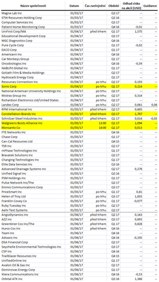Odhady výsledků firem, které čísla oznamují v následujícím týdnu, najdete na druhé stránce.