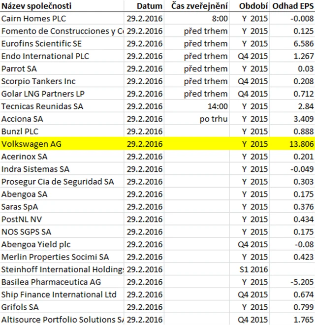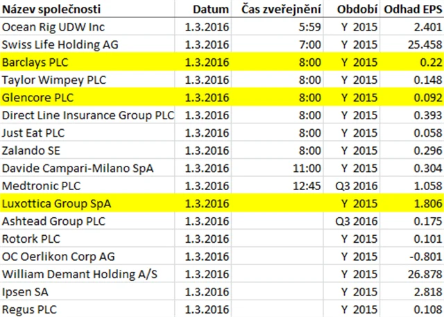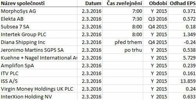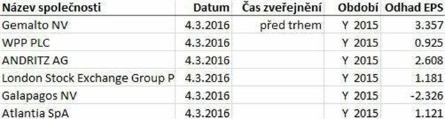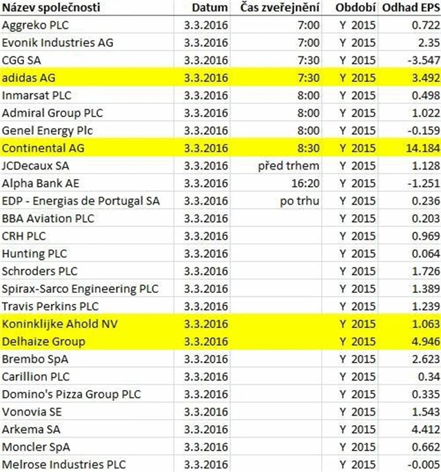 Poznámka: Odhady analytiků jsou aktuální k 26. 2. 2016.