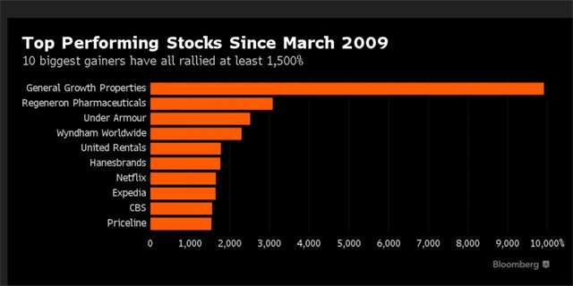 Retrospektivně vidíme, že právě tehdy trh dosedl na dno. Od té doby býk zajistil akciím dodatečnou hodnotu 14 bilionů USD, čímž odmazal předešlé ztráty a zajistil indexu S&P 500 téměř 200% zhodnocení.