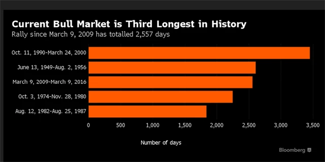 Pokud ovšem má být historie alespoň nějakým vodítkem, pak indikuje, že býčí jízda ještě nějakou dobu potrvá. Býčí trhy totiž zpravidla umírají v bezmezném optimismu, ten ale nyní nepanuje. "Všeobecný pesimismus a neochota investovat do akcií, která doprovázela poslední býčí trh, je unikátní záležitostí," říká Liz Ann Sonders, šéfka investic v Charles Schwab & Co. Tento kontrariánský sentiment podle ní vytváří "stěnu strachu, po které akcie s oblibou šplhají".