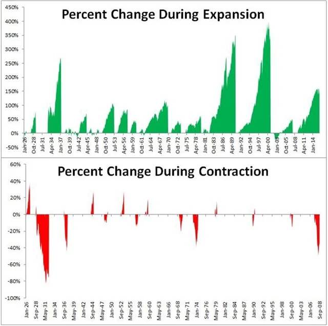 Jakou mají akcie výkonnost během expanzí a kontrakcí?