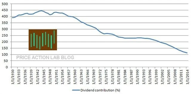 Význam dividend a jejich vliv na celkové výnosy klesá již déle než půl století, což může souviset jak s růstem spekulativních obchodů, tak s technologickým rozvojem a vlivem médií. Zatímco v minulosti se investoři při hromadění svého bohatství spoléhali především na zisk ve formě dividendy a jeho reinvestování, dnes jsou zaměření spíše na kapitálový výnos a cenový rozdíl. Je to dobře, nebo špatně?