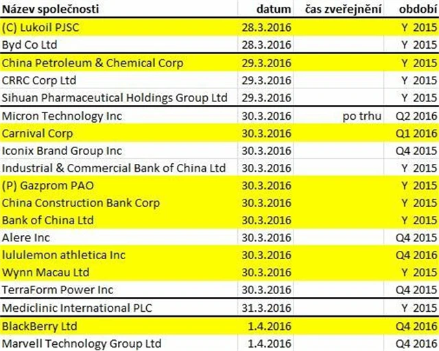 Očekávané výsledky světových firem v týdnu od 28. března (24. 3. 2016)