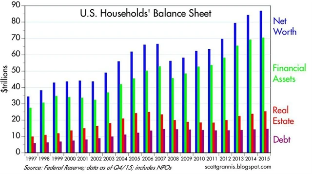 K 31. prosinci 2015 čisté jmění amerických domácností dosáhlo závratných 86,7 bilionu dolarů. To je asi o třetinu více, než jaká je hodnota všech akciových trhů na světě (podle Bloombergu činila na konci loňského roku 64,6 bilionu dolarů).