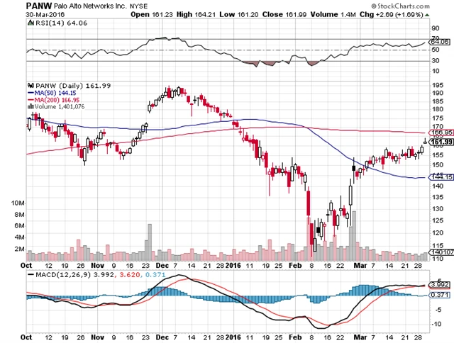 Předposlední firmou v seznamu je Palo Alto Networks, která působí v podobném byznysu jako předchozí kandidát. Jako jedna z mála v rámci seznamu je na tom akcie firmy za poslední rok dobře, ačkoli začátek letošního roku byl velice nepříznivý.