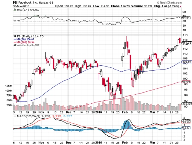 Nejlepší na konec, poslední firmou v Nicholsově výběru je Facebook. Přestože jde o největší společnost v seznamu, jejíž příjmy jsou proti ostatním astronomické, není očekávaný růst o 42 % v tomto roce a 33 % v tom následujícím nereálný. Facebook má na své straně kromě velikosti také tržní podmínky, které mu zaručují, že jeho postavení v nejbližší době nebude ohroženo. Firma tak může v následujících pěti letech jen v USA zdvojnásobit příjmy díky růstu svého jádrového byznysu a Instagramu, jež převyšují potenciál aplikací WhatsApp a Messenger.