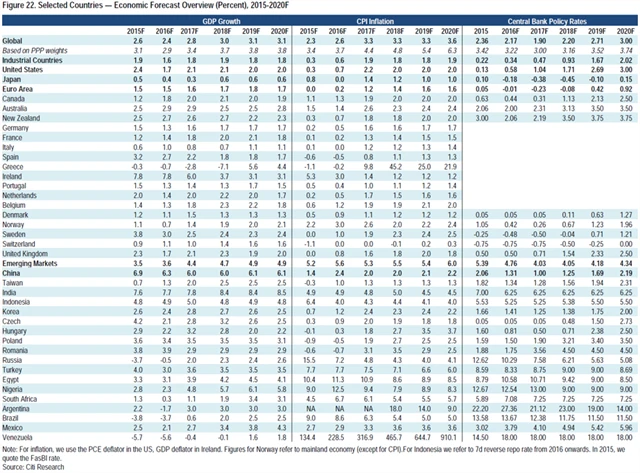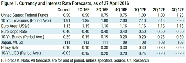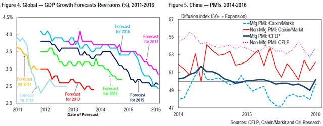 V dubnu jsme přistoupili pouze k mírné změně výhledu globálního ekonomického růstu. Ten v roce 2016 čekáme okolo 2,4 %, tedy mírně pod loňským tempem 2,6 %. To představuje mírné zhoršení výhledu z března. Byl by to již pátý rok v řadě, kdy globální růst znatelně nedosáhl své dlouhodobé normy okolo 3 % ročně, a byl by to nejslabší růst od roku 2009. Pokud připustíme možnost, že data o čínské ekonomice jsou nadhodnocována, dojdeme k ještě nižší míře globálního růstu.