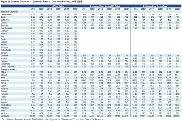 Na druhé stránce najdete přehledy očekávaného vývoje ekonomiky, cen komodit a výnosů dluhopisů.