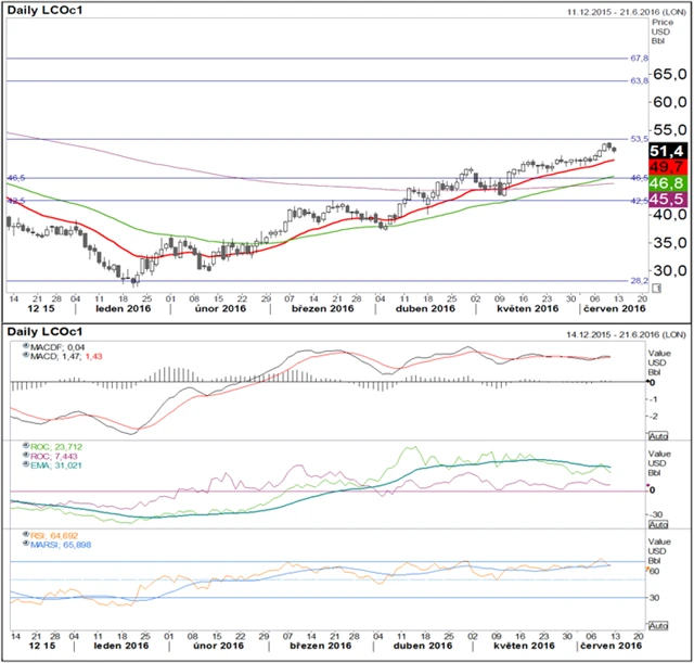 První polovina uplynulého týdne byla na světových trzích navzdory slabým květnovým datům z amerického trhu práce, která vyšla v pátek 3. června, klidná. Obrat přišel ve čtvrtek, kdy dění na trzích ovlivňoval vývoj cen černého zlata. V pátek se pak ke slovu přihlásilo blížící se referendum o setrvání Spojeného království v Evropské unii naplánované na 23. června.