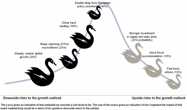 Slet černých labutí v jediném grafu: Rizika negativního vývoje převažují