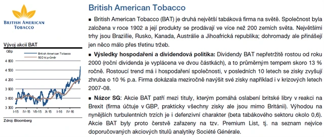 V britském referendu zvítězili zastánci opuštění Evropské unie. To přineslo na trhy zvýšenou volatilitu a nervozitu ohledně budoucího vývoje. Zda na trzích zavládne opět klid, bude do jisté míry záviset i na postoji centrálních bank. Lze očekávat, že budou trhy zásobovat dodatečnou likviditou, se zpřísňováním měnových podmínek pospíchat nebudou. To s sebou ponese tlak na výnosy státních dluhopisů a tržní úrokové sazby. Již tak dlouhé období nízkých úrokových sazeb bude zřejmě ještě delší. O to zajímavější alternativou mohou proto být akcie velkých firem, které nabízejí stabilní nebo rostoucí dividendy.