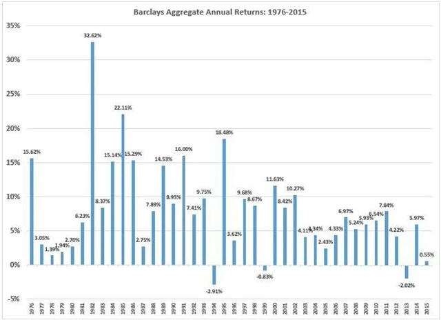 Z grafu je patrné, že výnosy Barclays Aggregate Bond Indexu (původně Lehman Aggregate Bond Index) byly v tomto období skutečně impozantní, samotná čísla však vyznívají ještě lépe.
