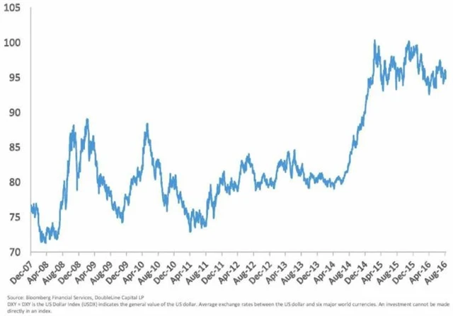 Aktuálně si šéf DoubleLine Capital tak trochu s dolarem neví rady. "Začíná to vypadat na pokles hodnoty dolaru," uvedl Gundlach v prezentaci na začátku září. "Nevidím důkaz ani argument pro to, že by další zvýšení sazeb v USA mělo nějak výrazně podpořit americkou měnu."