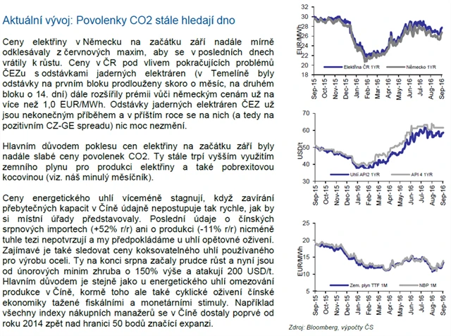 Hlavním důvodem poklesu cen elektřiny na začátku září byly nadále slabé ceny emisních povolenek. Ty stále trpí vyšším využitím zemního plynu pro produkci elektřiny a také pobrexitovou kocovinou.