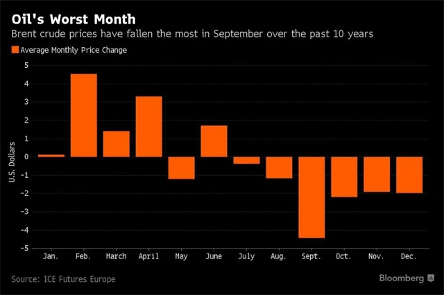 V posledních deseti letech však něco podobného lze pozorovat také na trhu s ropou. Podle agentury Bloomberg cena ropy v září v poslední dekádě klesla průměrně o 4,43 USD na barel. To by při současné ceně ropy znamenalo 10% propad, který by následoval po 11% růstu v srpnu, což byl mimochodem nejlepší srpnový výsledek od roku 2005.