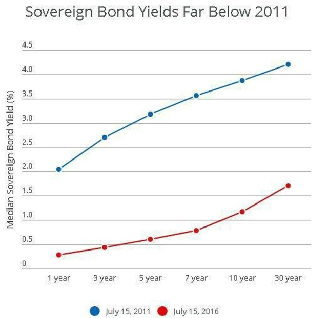 "Mnoho investorů ve svých portfoliích realizovalo velké zisky, ale pro investory, kteří jsou závislí na pravidelných příjmech z dluhopisů, jako jsou penzijní fondy nebo pojišťovny, jsou následky zničující," píše Fitch. Propad výnosů u dluhopisů s ratingem na investičním stupni mezi lety 2011 a 2016 činí u nesplacených dluhopisů kolem 50 miliard dolarů. Medián výnosu u 10letých státních dluhopisů klesl podle společnosti z 3,87 % v červenci 2011 na současných 1,17 %. Celkově to tedy v nesplacených dluhopisech, jejichž objem je kolem 38 bilionů dolarů, čítá ušlý zisk zmiňovaných 500 miliard dolarů.