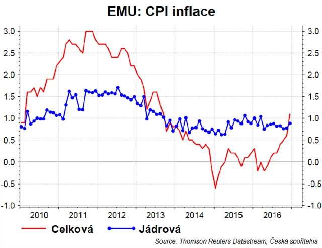 Co se změnilo od prosincového zasedání Draghiho družiny? Celková inflace v eurozóně začala akcelerovat směrem ke 2 % s tím, jak z meziročního srovnání vypadává efekt nízkých cen energií v loňském roce. Jádrová inflace nicméně stále nedosahuje ani jednoho procenta.