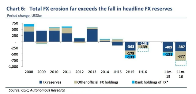 Analytička ze společnosti Autonomous Research Charlene Chuová ve své poznámce nazvané The War on Outflows upozorňuje na problém rychlého odlivu kapitálu ze země, který může mít na ekonomický růst Číny větší dopad než cokoli jiného. Připomíná zejména dva problémy: