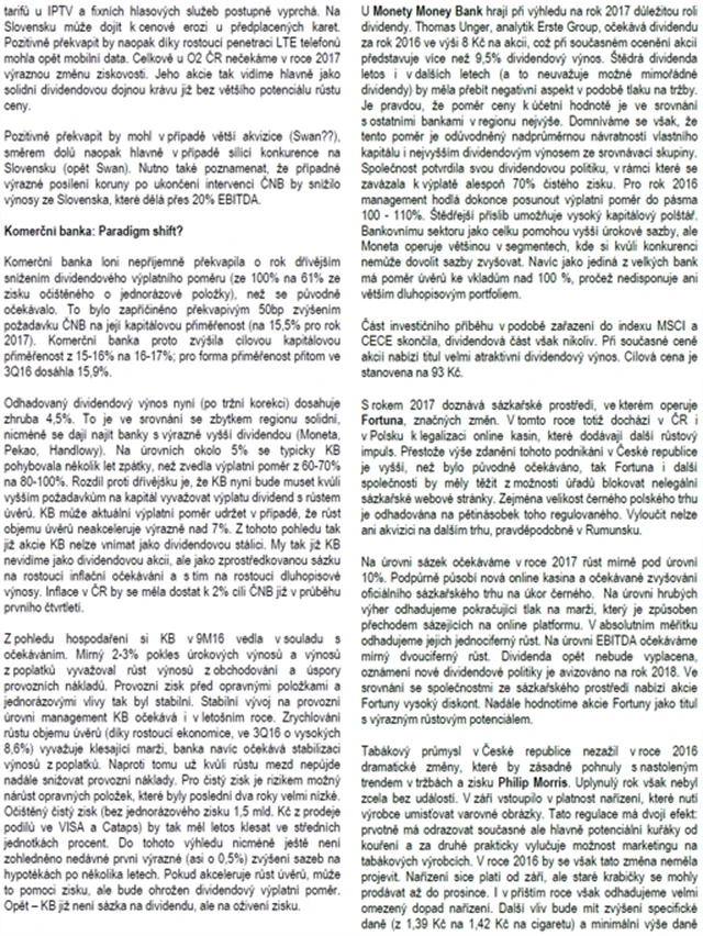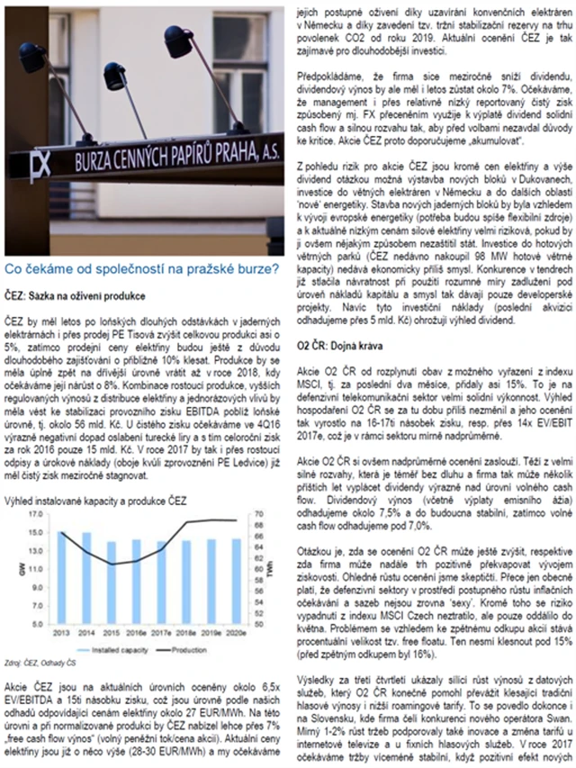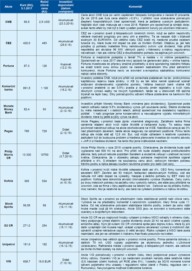 ČS: Lednová strategie pro české akcie a výhled na rok 2017