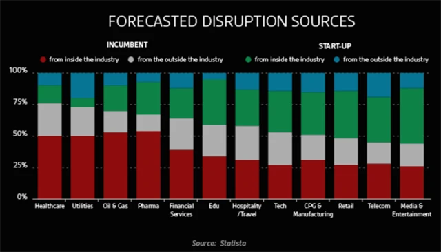 I veleúspěšné firmy pracují na sebedisrupci, přestože je to pro ně náročné. Ačkoli to není jen tak, dát vale úspěšnému obchodnímu modelu, například Uber, který narušil obor taxislužby a dopravy, pracuje na disrupci svého veleúspěšného modelu. Hodlá zaplavit svět samořízenými auty a převést západní svět na sdílení čili nevlastnění toho, co dnes považujeme za status a máme to rádi, ale necháváme to po většinu času někde parkovat.