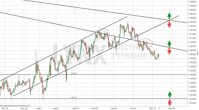 Pokud se EUR/USD bude schopen v aktuálním rozpětí otočit a vystoupit opět nad 1,0700, budeme muset přehodnotit technický obrázek a počítat s možným postupem výše k cenám vyšší klesající linie okolo 1,0850. Sebevědomé proražení této vyšší linie může značit změnu krátkodobého trendu a návrat až k cenám 1,1300-1,1400, kde se nachází horní hranice hlavního rozpětí. Taková situace by ale byla velice nebezpečná a pravděpodobně by pár vynesla k ještě vyšším cenám.