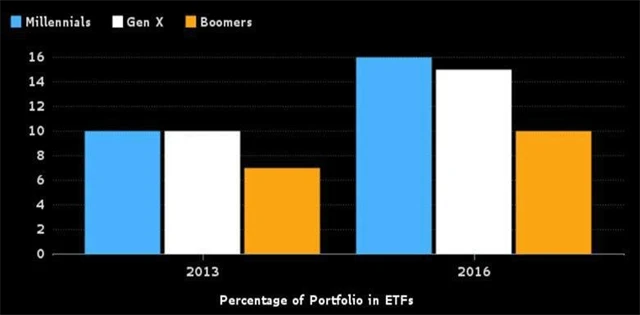 Čím mladší investoři, tím levnější nástroje si vybírají. Alespoň tak to vyplývá z údajů společností TD Ameritrade Holding nebo Charles W. Schwab. Právě generace Y nebo mileniáni si do portfolií vybírají ty nejlevnější nástroje, což souvisí i s tím, že stráví nejvíce času na internetu. Není překvapením, že nejoblíbenější ETF mezi mileniány v USA má poplatek 0,05 %, což ale podle Balchunase vyvolá tsunami, která spláchne velkou část příjmů správců aktiv v nejbližších letech.