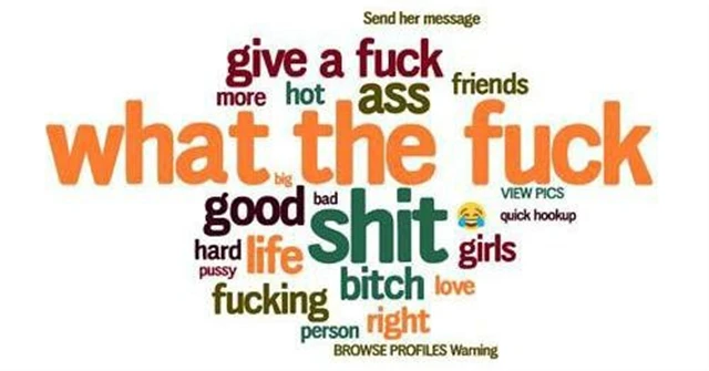 Zajímavý je i pohled na takzvaný slovní mrak (word cloud), který ukazuje, v jakém kontextu byl výraz používán nejčastěji. Poměrně atraktivně samozřejmě slovo vypadá v kombinaci s výrazy girls, bitch nebo pussy, s přehledem ale vede spojení What the fuck. Překlad necháme na vás.
