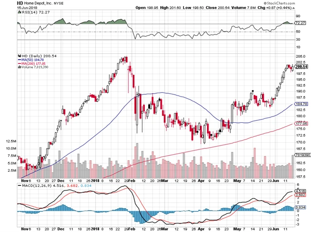 Řetězec pro domácí kutily je jednou z nejstabilnějších firem na trhu. Je považován za jeden z pilířů americké ekonomiky, a když se daří ekonomice, daří se i společnosti. Vzhledem k současným dobrým vyhlídkám amerického hospodářství je tedy pozitivní i výhled pro akcie firmy Home Depot.