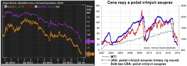 Cena ropy Brent v týdnu spadla celkem hluboko pod 30 USD za barel. Kdo si ještě vzpomene, že loni v listopadu stála 50 USD? Od podzimu 2014 se cena propadla o více než 75 %.