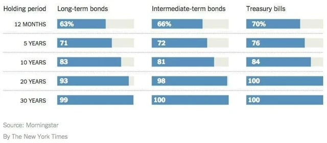 Opodstatněnost svého tvrzení o 100% zainvestování do akcií dokazuje jak samotným Warrenem Buffettem, který má všechny své peníze v akciích (alespoň to Levine předpokládá), tak i níže přiloženou tabulkou, která vychází z historických dat a jasně ukazuje, že v dlouhém horizontu jsou akcie nejvýhodnější sázka. A přidává tvrzení, že sám má v akciích minimálně 95 % prostředků a že již za dob svého působení ve firmě Sanford C. Bernstein & Company (v roce 2000 byla převzata firmou AllianceBernstein) doporučoval svým klientům stejný přístup.