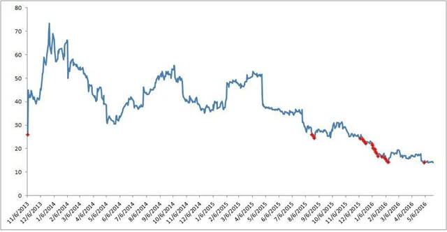 Jako příklad Batnick používá akcie společnosti Twitter. Pokud by investor nakoupil 100 akcií za cenu 26 dolarů při IPO společnosti a při každém posunutí historického minima by přidával dalších 10 akcií (celkově 25krát), ztrojnásobil by sice svou původní pozici, ale byl by ve 30% ztrátě. Podle Batnicka může podobný přístup vést k výrazným ztrátám na účtu investora a mnoho investorů takto nakonec opravdu přijde o peníze.