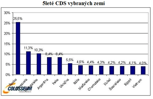 Napětí na finančních trzích je pochopitelné. Řada evropských států se potýká s vysokým zadlužením a investoři se obávají státních bankrotů. Odrážejí to i 5leté CDS. Mezi státy s 12 nejvyššími hodnotami ve světě nalezneme 8 zemí z Evropy.
