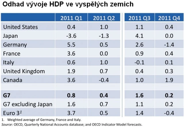 Nejistota ohledně schopnosti politiků se shodnout na řešení ekonomických problémů, větší dopady zemětřesení v Japonsku a vysoké ceny komodit - to jsou některé z důvodů pro obavy o další ekonomické oživení, které ve své pravidelné zprávě o vývoji světové ekonomiky uvedla OECD. Dokonce i Německo, dosavadní tahoun eurozóny, má ve čtvrtém kvartálu ekonomicky oslabit.