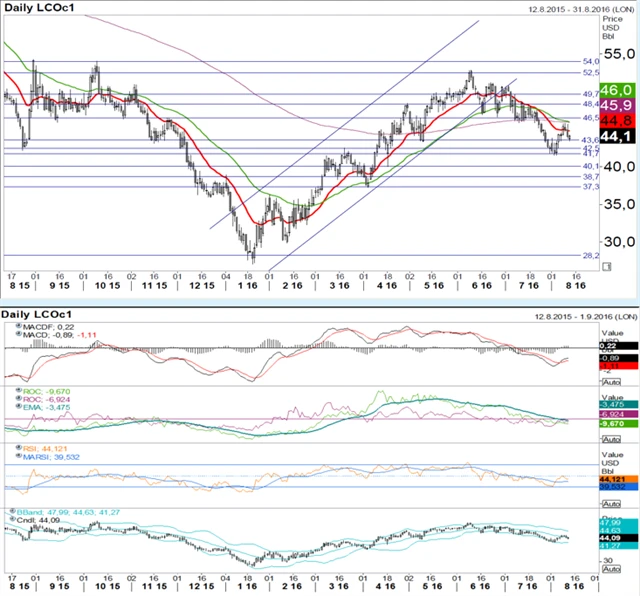 Technická analýza měnového páru EUR/USD a cen ropy Brent a zlata. (13. 8. 2016)