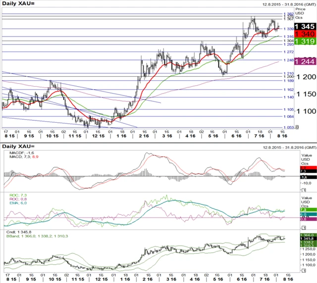 EUR/USD, ropa, zlato: Co naznačuje technická analýza? (13. 8. 2016)