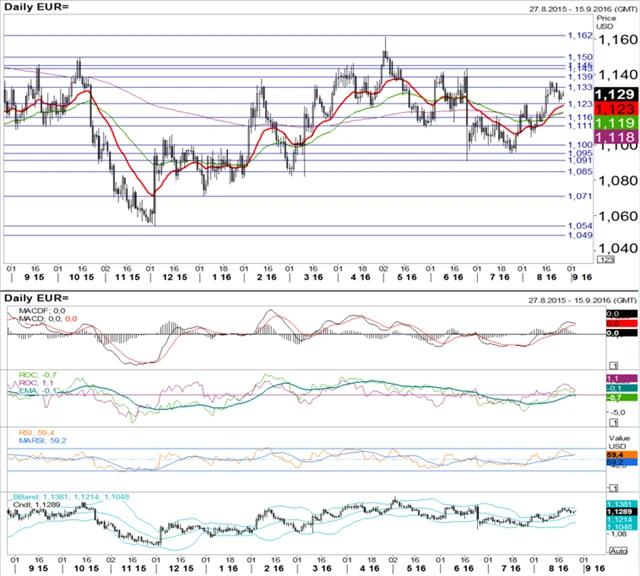 Technická analýza měnového páru EUR/USD a cen ropy Brent a zlata. (27. 8. 2016)