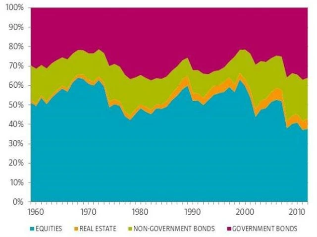 Například od roku 1970 by bylo zjednodušené portfolio rozděleno v poměru 60 % akcie a 40 % dluhopisy (obrázek výše). Mnohem lepší poměr rizika a výnosu by však nabídlo portfolio, které by mělo v následujících 45 letech tyto složky rozděleny opačně. Nadvážení v akciích je také vidět v letech 1999 nebo 2007, v obdobích nafouklých bublin těsně před splasknutím, a naopak po finanční krizi je v akciích méně než 50 % prostředků. Jde o to, že tržní kapitalizace akcií v porovnání s dluhopisy po krizích klesá, takže na konci cyklu jich je mnoho a na začátku cyklu málo. To ukazuje na to, že sledování trhu může investorovi přinést více ztrát než užitku, protože je stále pozadu za cyklem. Ve skutečnosti by udělal lépe, kdyby byl zainvestován opačně, než jaká je aktuální alokace celého trhu.