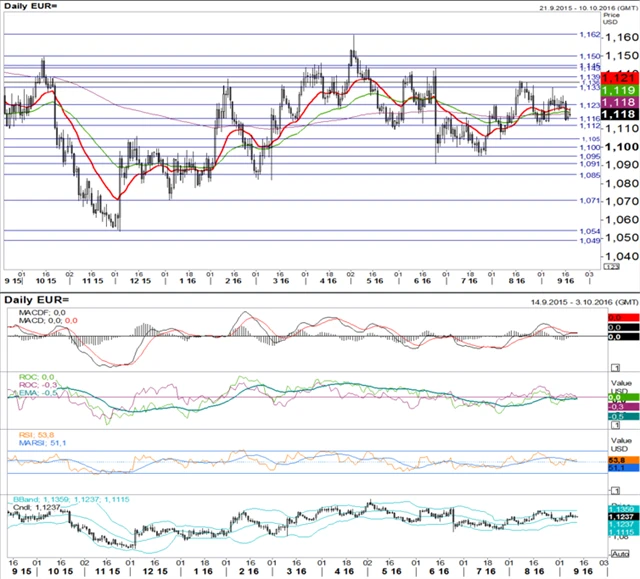 Technická analýza měnového páru EUR/USD a cen ropy Brent a zlata. (21. 9. 2016)