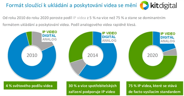 Před lety ji znala jen hrstka zasvěcených. Předpokládaný rozmach IP videa v dalších deseti letech z ní ovšem dělá kandidáta nákupu. Společnost KIT digital sídlí v Praze a je obchodována na Nasdaqu a na pražské burze. Masivní investice do akvizic a rozvoje firmy zatím polykají zisk, ovšem do budoucna lze věřit v silný růst tržeb i zisku. Seznam klientů (mimo jiné AT&T, Vodafone, Airbus, FedEx, SAP nebo Volkswagen) dává tušit, že se lídr odvětví nechystá vyklízet pozice.
