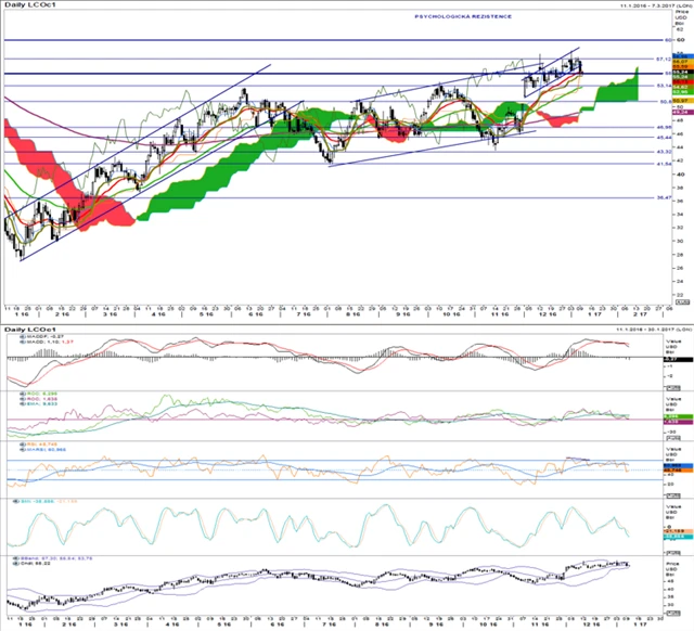 Technická analýza měnového páru EUR/USD a cen ropy Brent a zlata. (11. 1. 2017)
