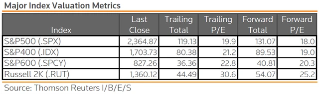 Jak jsou aktuálně oceněny hlavní americké akciové indexy?