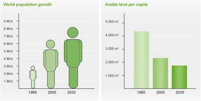 Čínská vláda chce udržet plochu obdělávané půdy nad 120 miliony hektarů alespoň do roku 2020, aby země udržela nezávislost, pokud jde o produkci obilí. Bank of America ovšem odhaduje, že už je Čína za touto pomyslnou hranicí a že se plocha polí v Číně do roku 2015 sníží na 117 milionů hektarů.
