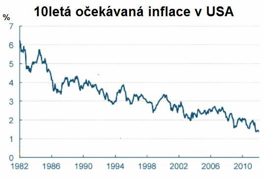 Clevelandské pracoviště amerického Fedu zpracovalo zajímavou analýzu výhledu očekávané inflace v USA pro příštích deset let. Ta by měla být jen zhruba 1,39 % ročně, což je nejnižší hodnota za posledních třicet let. Odhad inflace je v tomto případě postaven na modelu, který kombinuje informace z více zdrojů, například z vývoje cen inflačně krytých dluhopisů (TIPS) nebo z průzkumů mezi odborníky a domácnostmi.