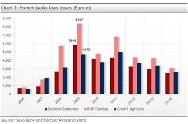 Ocenění francouzských bank od loňského léta negativně ovlivňovaly zejména události týkající se zemí PIIGS (Portugalsko, Itálie, Irsko, Řecko a Španělsko). Francouzské banky mají silné vazby (investice) na Řecko i Itálii, a proto se s akciemi francouzských bank zacházelo tak, jako by se rovněž ocitly uprostřed krize.