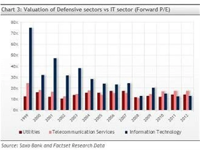 Pokud se podíváme na ocenění defenzivnějších a nerůstových sektorů, jako jsou třeba telekomunikace a utility, zjistíme, že jsou zisky těchto dvou sektorů spíše menší než u stabilního a vysoce rostoucího technologického sektoru. Takže tady něco nesedí.