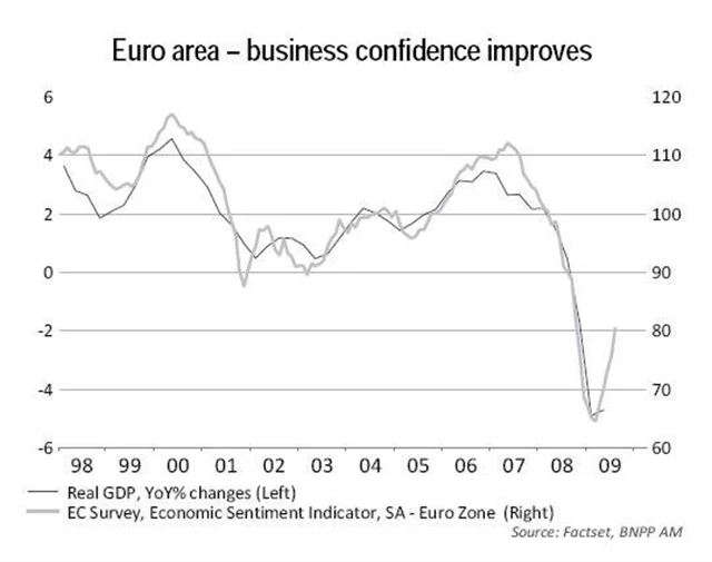 Silnější světová ekonomika by měla popohnat export, a to především v zemích vyvážejících výrobní statky. Euro by nemělo být překážkou, ačkoli je silnější než loni na jaře. Spotřeba však může být tlumena rostoucí nezaměstnaností a strachem ze ztráty práce. Lidé utrácejí víc díky pocitu, že mají více peněz díky podpoře například automobilového průmyslu. Ta je sice dočasná, má však kladný psychologický efekt. A právě psychologie, především důvěra, je základem budoucího ekonomického zotavení.